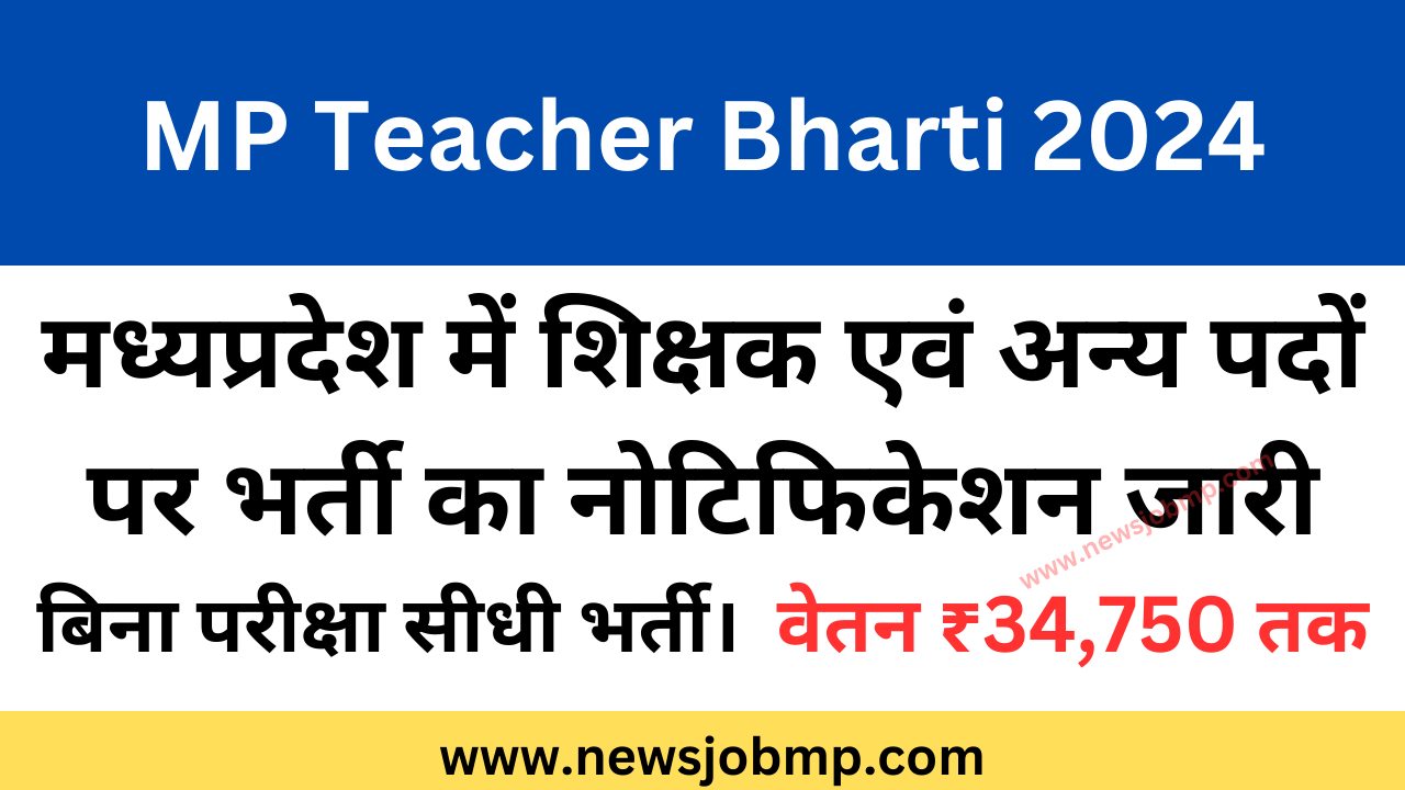 MP Guest Teacher Bharti- मध्यप्रदेश में शिक्षक एवं अन्य पदों पर भर्ती हेतु आवेदन आमंत्रित किए गए हैं,इन पदों पर आवेदन ऑफलाइन माध्यम से भर सकते हैं आवेदन की अंतिम तिथि 26 मई निर्धारित की गई है, भर्ती से संबंधित अधिक जानकारी आगे दी गई है|